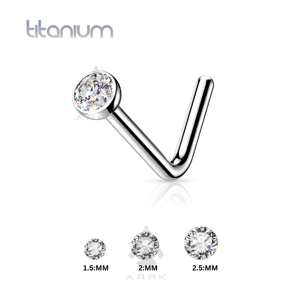 L Bend Nose Stud Implant Grade Titanium Clear Gem 20G
